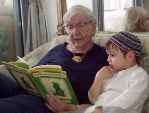 Savta reading Keep Your Mouth Closed, Dear to MichaEl