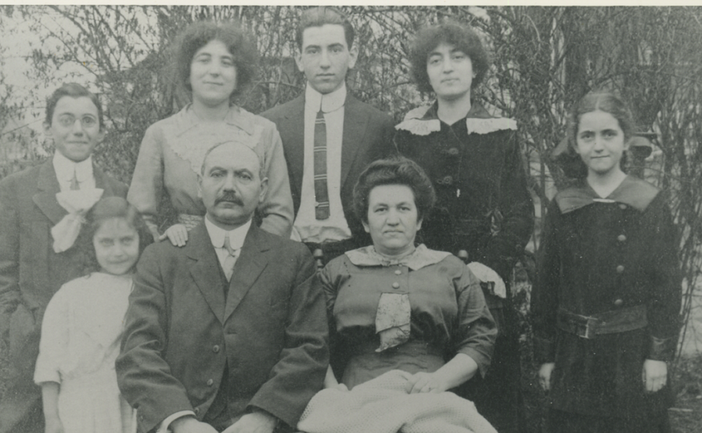 Max and Jennie Segall Family outside. Children from Left: Dooley, Helen, Esther, Philip, Sara, and Dot