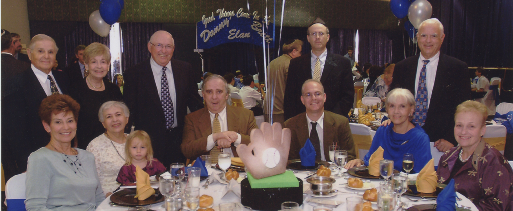 L, standing: Arnie and Phyllis (Aiken) Brown, Bobby Jacobs, Bobby Eisenstein, Mark Segall. Seated: Trina Jacobs, Joanne & Myles Eisenstein (Eliza Aiken sitting on Joanne’s lap), Bruce Eisenstein, Janet, Annette Segall (m Mark). Photo from Bar Mitzva of Danny, Elan, and Brett Aiken, Jeff’s sons.
